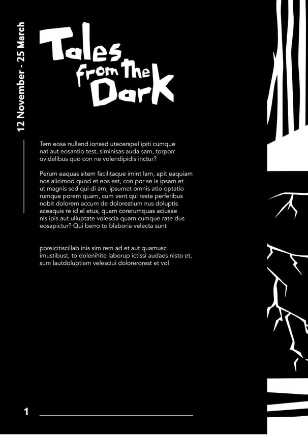 Graphic design for an exhibit about fairy tales from an adult perspective. It looks into the history of fairy tales, why they exist, their subject matters, how they evolved and how they spread across borders around europe.