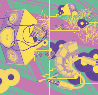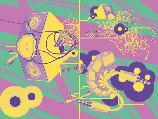 My identity for this concert is inspired by the arts and crafts movement from the late 1800's. The arts and crafts movement is known for their intricate patterned wallpapers. I use this a base to make patterns, but instead of using flowers, I used common objects found in music. Since there's no specific genre to allude to, I decided to highlight object everyone uses to some extent. There's always a lot of cables, microphones and speakers. The vinyl is still looked at as a preferred way to listen to music, with its tactile elements. All of these object show a love for music, even when cables twists together!